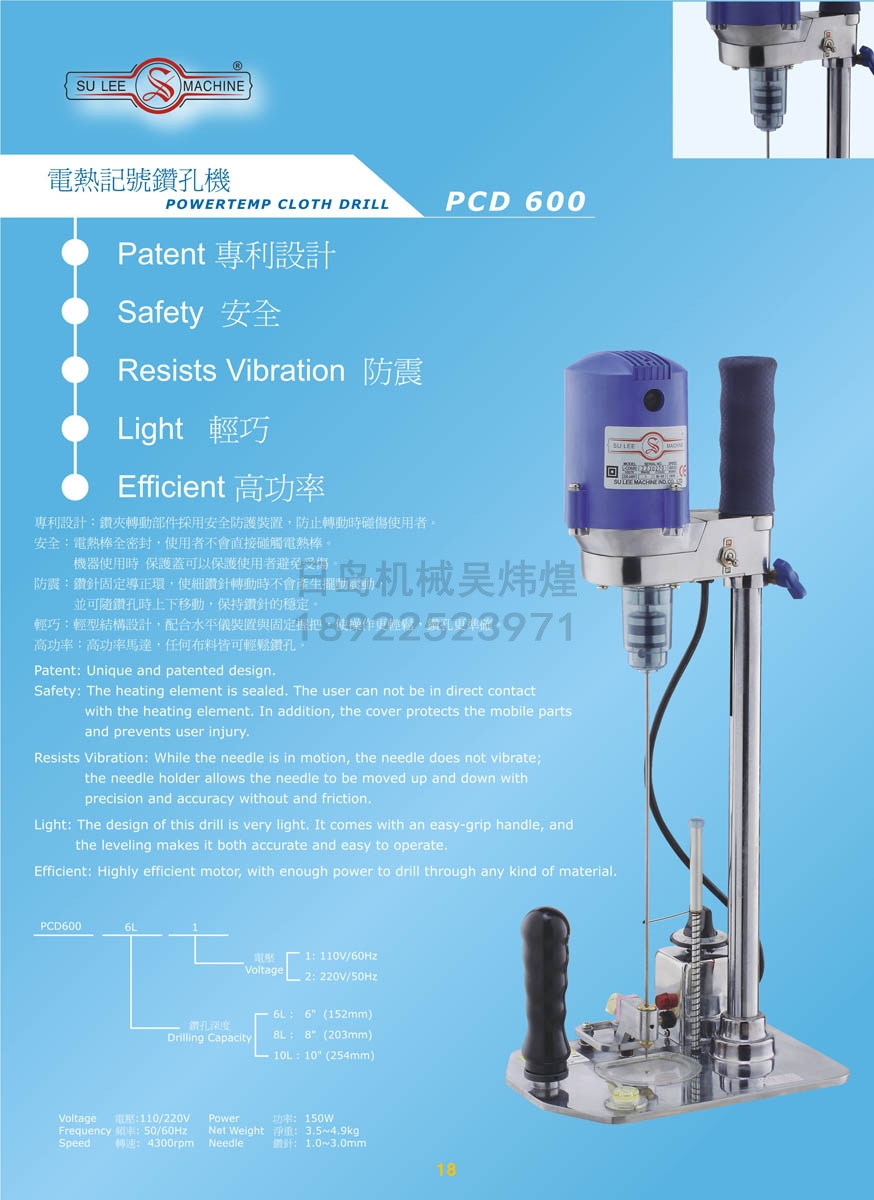 • 速利SULEE電熱記號鉆孔機PCD600