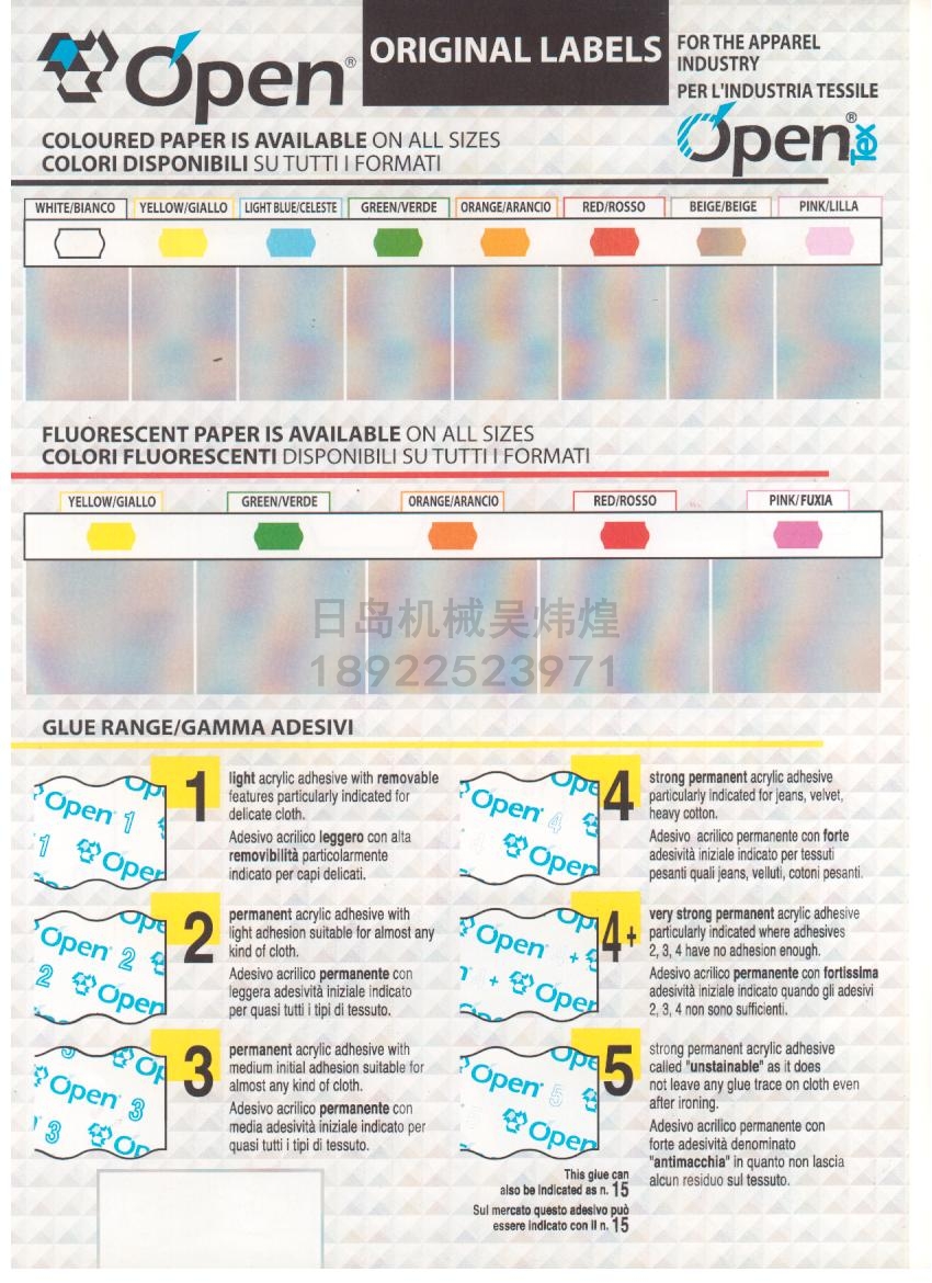 | 產(chǎn)品名 | 意大利OPEN服裝廠(chǎng)專(zhuān)用打碼機紙/打碼紙/銀碼紙/號碼紙 | |||||