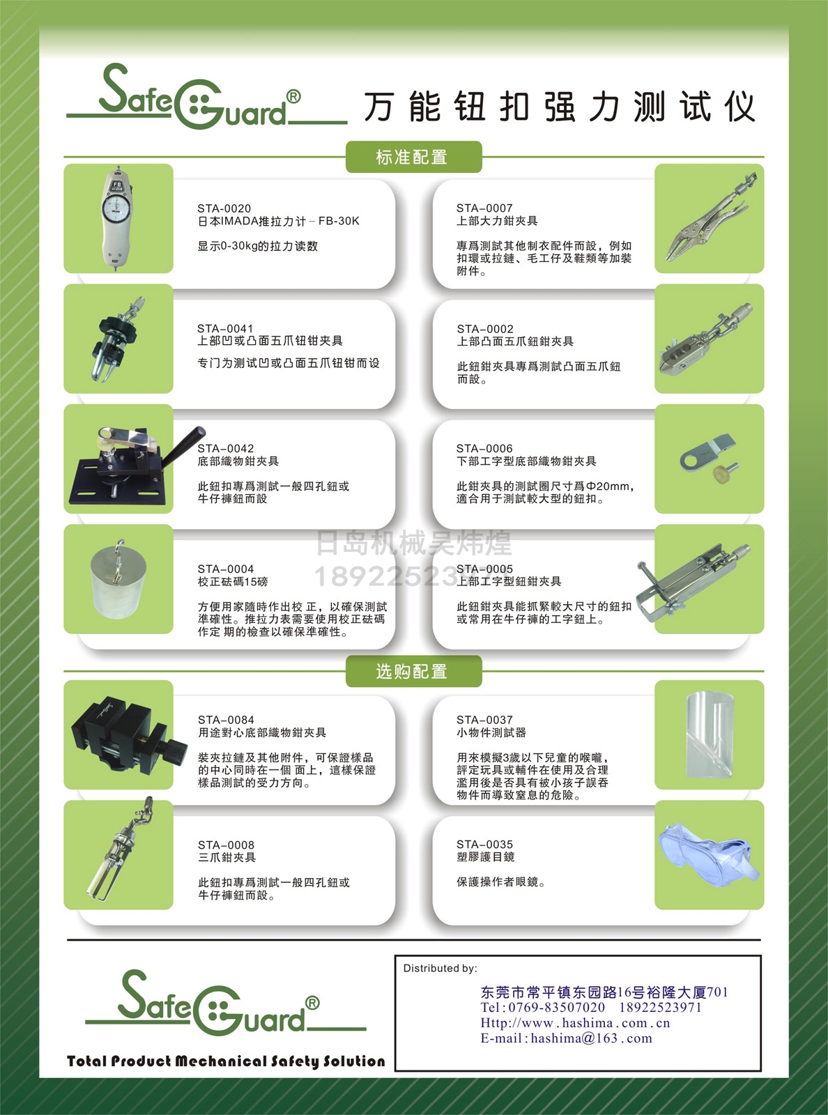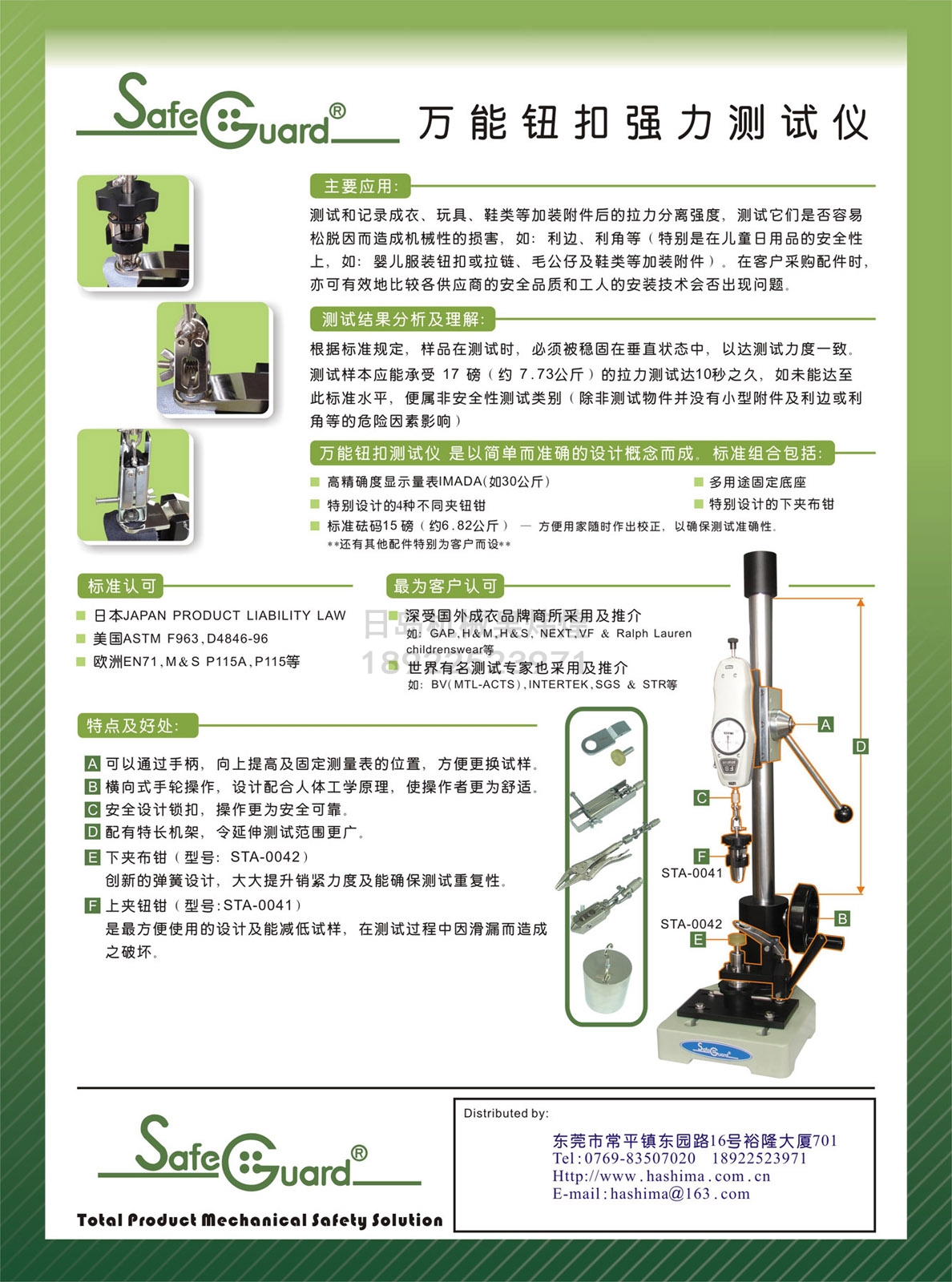 | 產(chǎn)品名 | SafeGuard萬(wàn)能鈕扣強力測試儀 | |