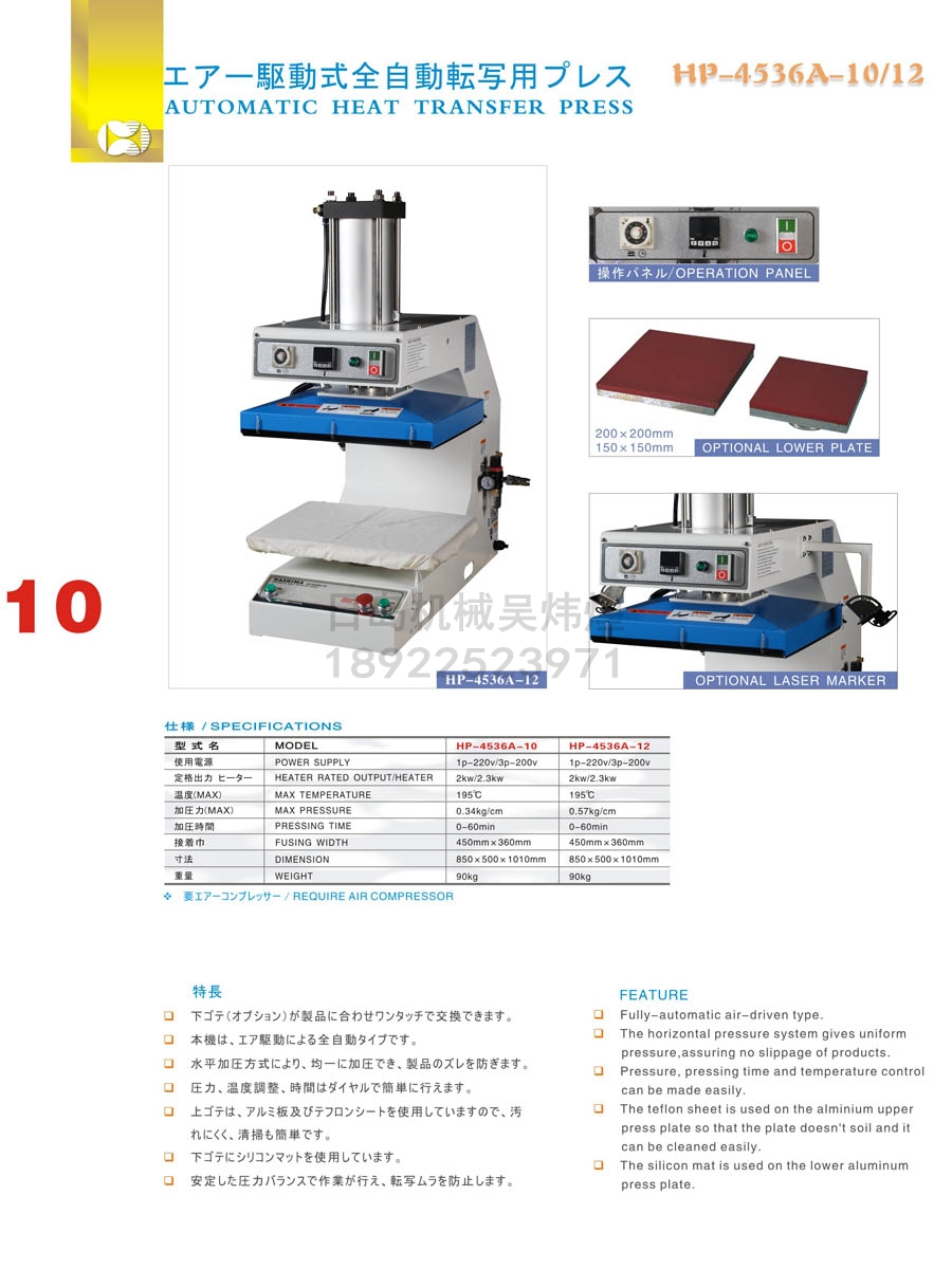 • 羽島HASHIMA HP-4536A-10/12 全自動(dòng)轉移印花機