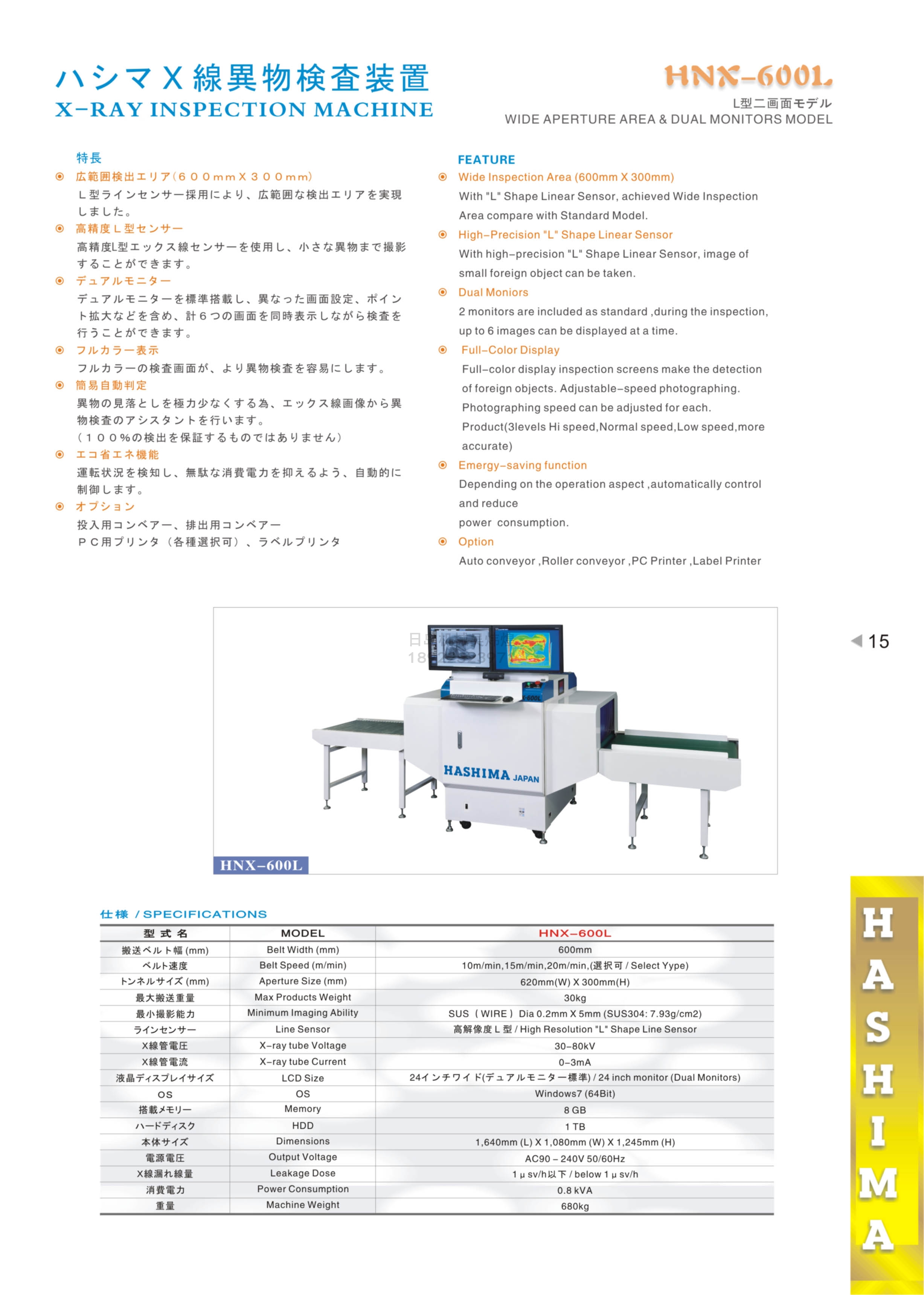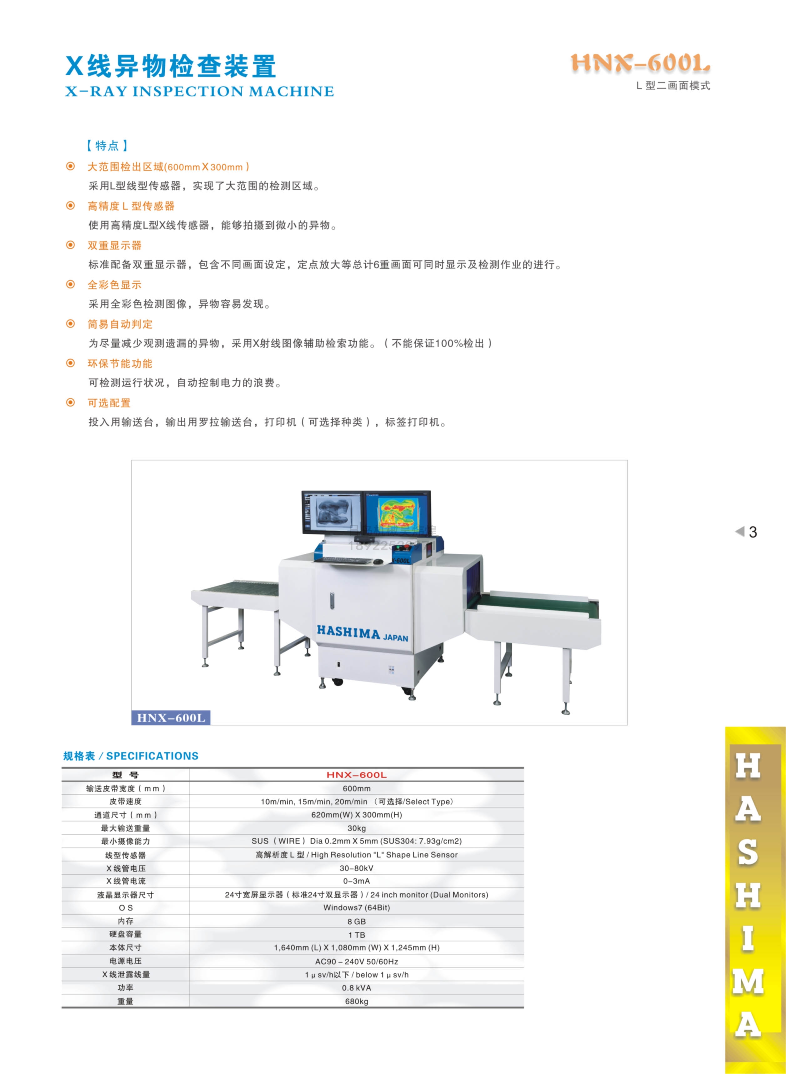 羽島HASHIMA HNX-600L X射線(xiàn)異物檢測裝置(L型二畫(huà)面模式)